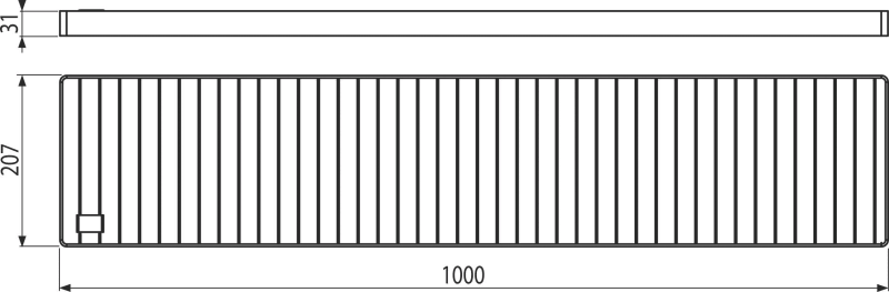 - A rács mérete 1000 × 210 mm