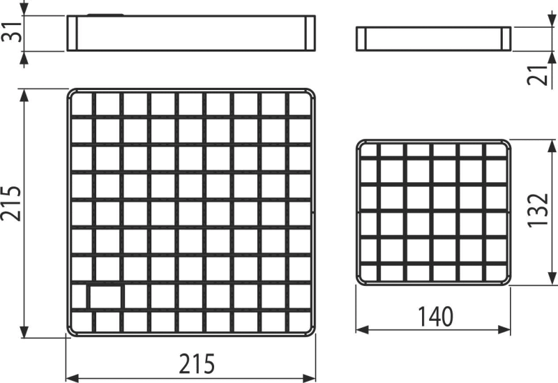 • A rács méretei 215 × 215 mm, 132 × 140 mm