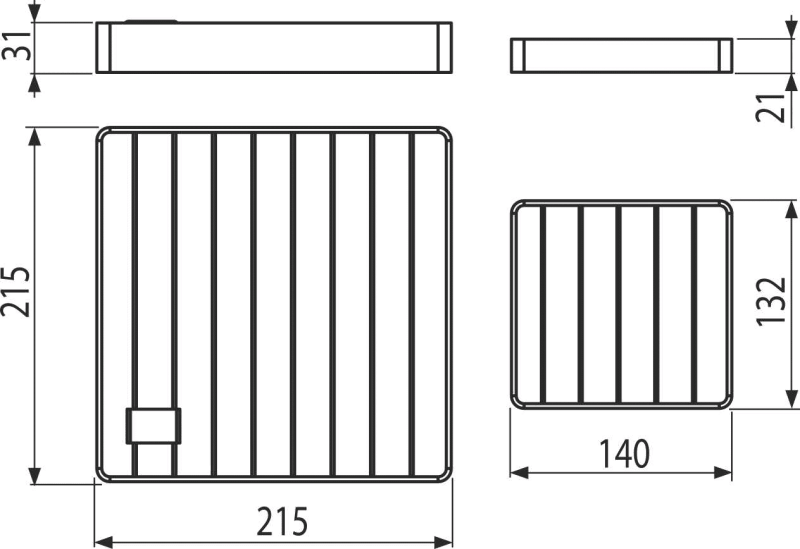 • A rács méretei 215 × 215 mm, 132 × 140 mm