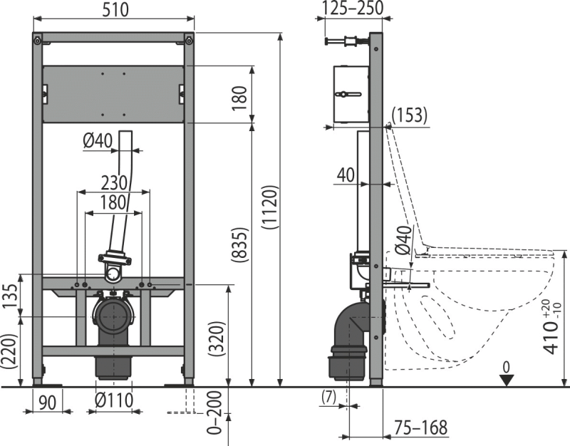 • A függesztett WC szereléséhez 180 mm vagy 230 mm csatlakozással