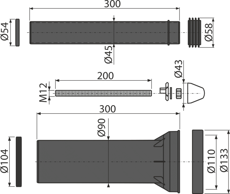 Komplett tartozékok, meghosszabbítás mozgássérült WC-hez – DN90, 300 mm, PE, fehér