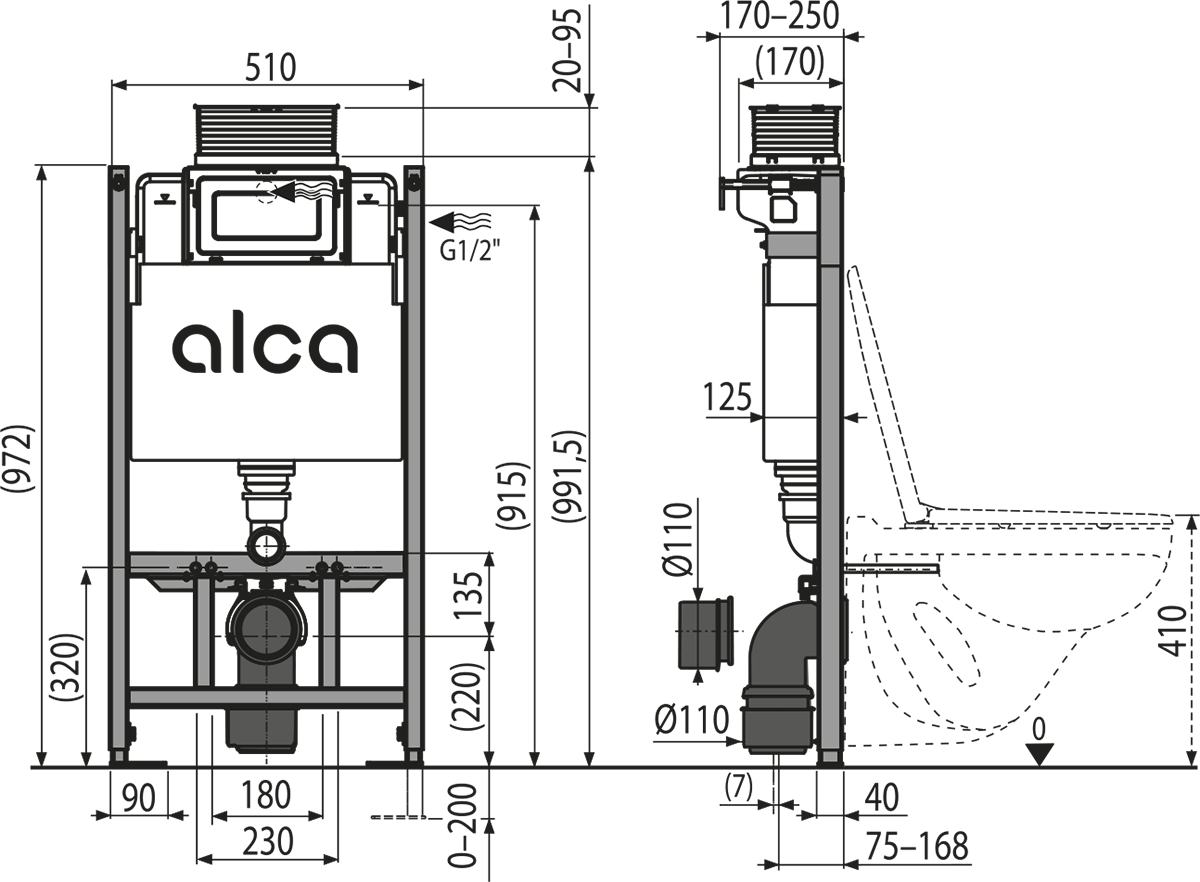 • Függesztett WC szereléséhez 180 mm vagy 230 mm csatlakozással