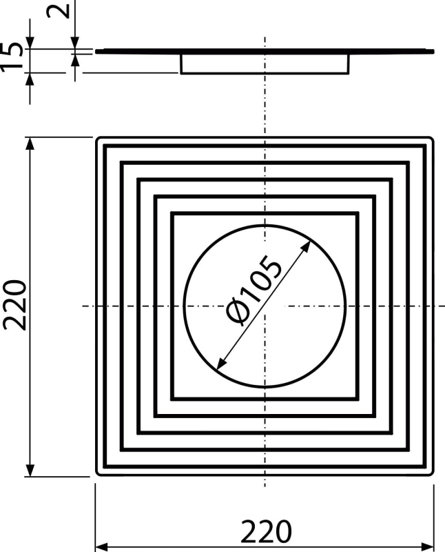 | APV2324-IZ | Padlóösszefolyó 105×105/50/75 mm függőleges, rozsdamentes rács, rozsdamentes szigetelés rögzítő, karima a 2.szintű szigeteléshez, kombinált SMART bűzzár |