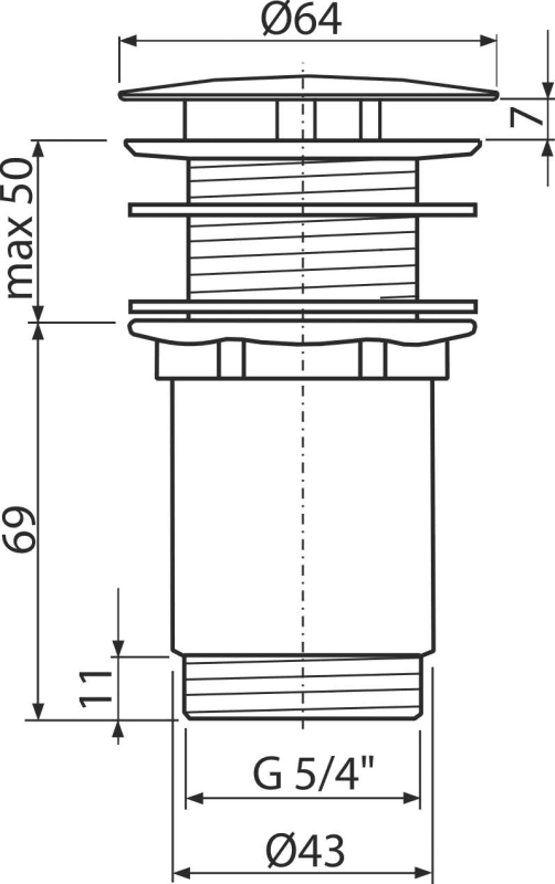 CLICK/CLACK nélküli mosdó leeresztő 5/4", fémből, nagy dugóval, túlfolyó nélküli mosdókhoz, fehér fényes, fehér-fényes