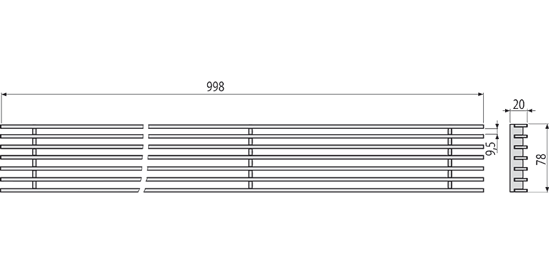 - A rács anyaga: rozsdamentes acél AISI 304, DIN 1.4301
