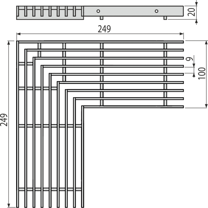 - A rács anyaga: rozsdamentes acél AISI 304, DIN 1.4301