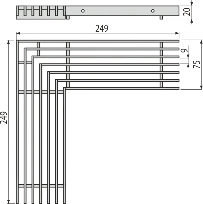 - A rács anyaga: rozsdamentes acél AISI 304, DIN 1.4301