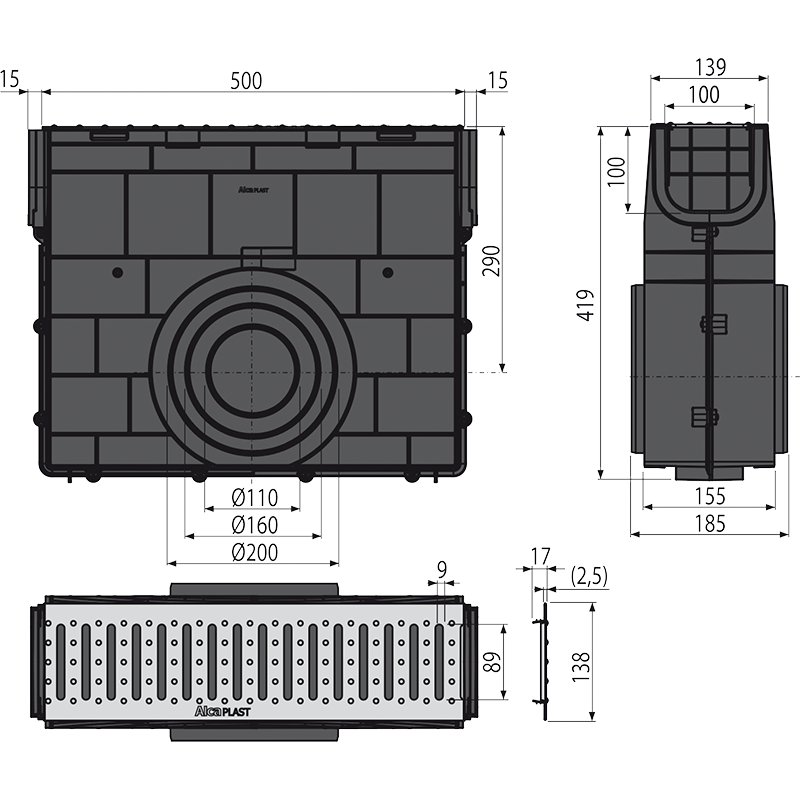 - Vízszintes csatlakozás Ø110, 160, 200 mm