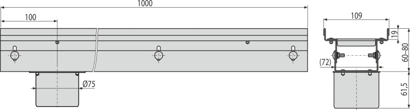 Drén folyóka 100 mm állítható, rozsdamentes acél