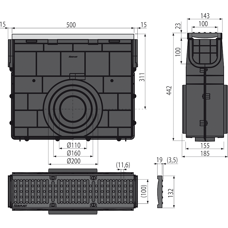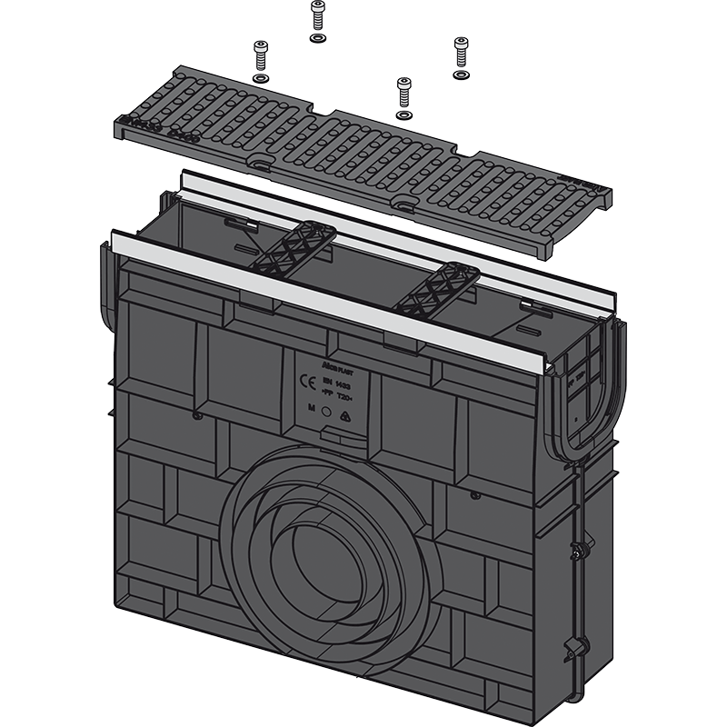 • Öntöttvas rács – folyókában rögzítve négy darab rozsdamentes acél csavarral, beömlőrés szélesség 11,6 mm