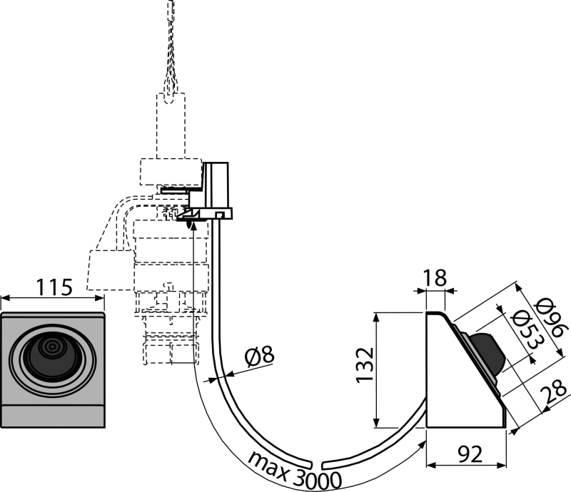 - 3 m cső a nyomógomb és az öblítőszelep csatlakozásához
