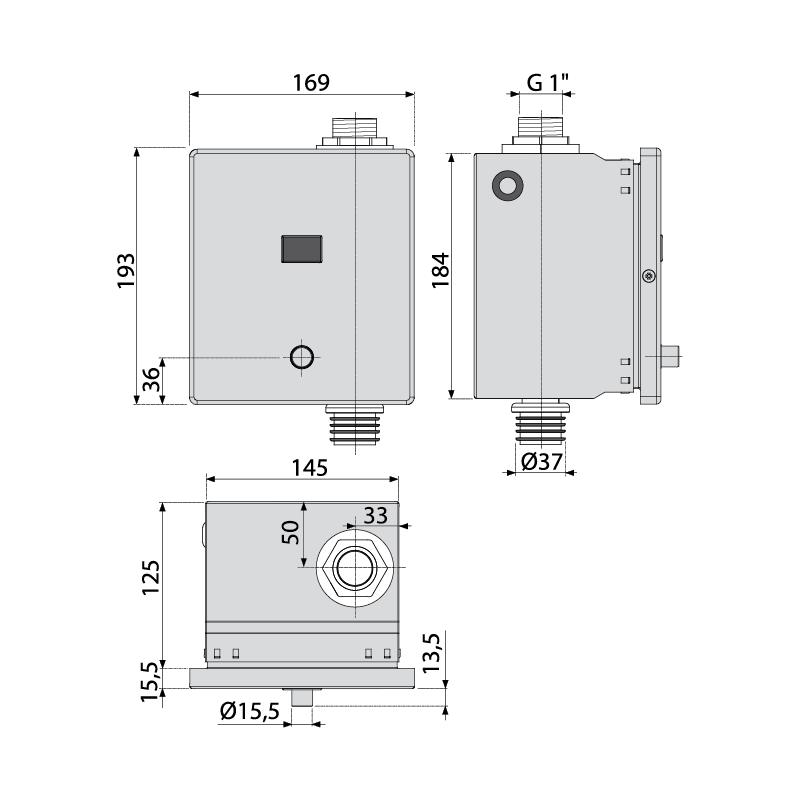 Automata WC öblítő kézi vezérléssel, fém, 12 V (hálózati)