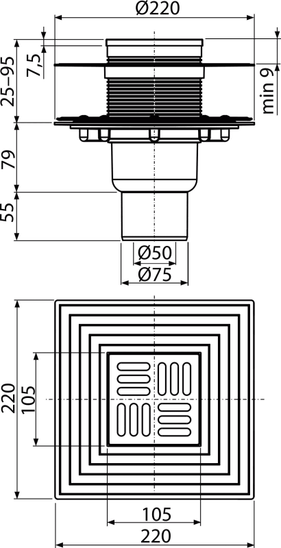 | APV0300 | Drain throat, grid 105×105 mm steel |