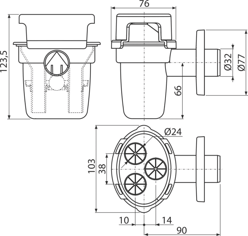 - Csatlakozás a szennyvízcsőre Ø32 mm