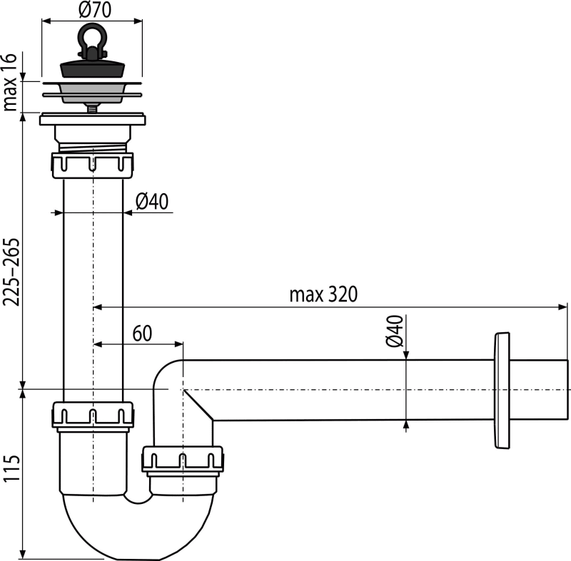 • Csatlakozás a szennyvíz csőre Ø40 mm