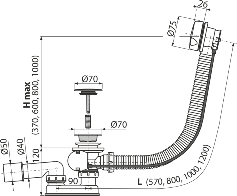 • Kádakhoz Ø52 mm - es kimeneti nyílással