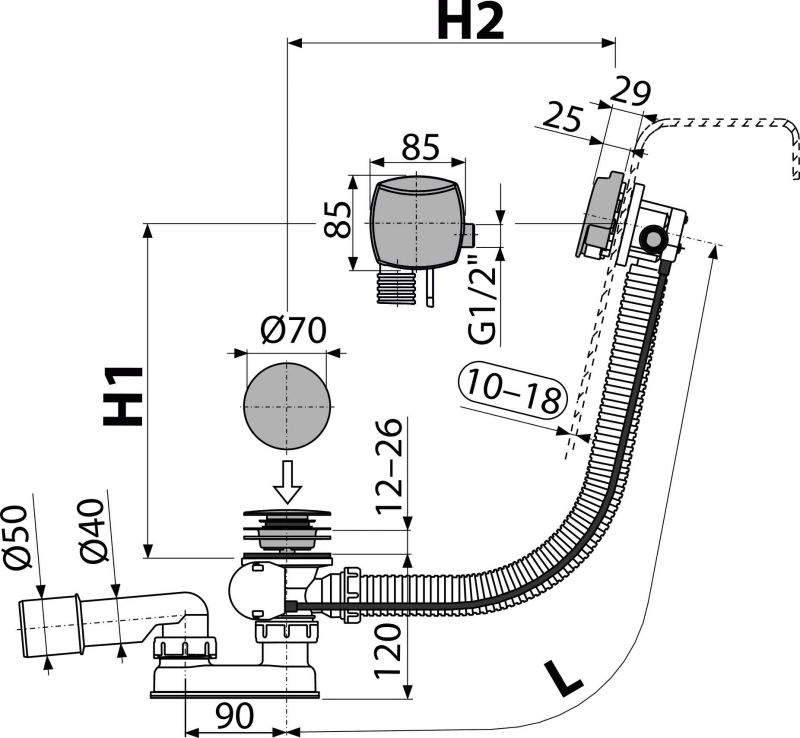 - Kád bekötő,szennyvízelvezető és túlfolyó készlet