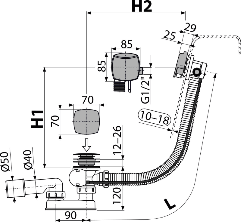 - Kád bekötő,szennyvízelvezető és túlfolyó készlet