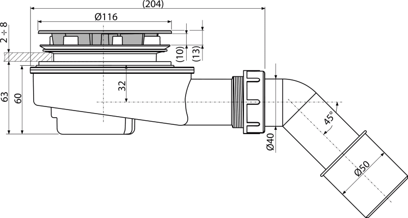 - Zuhanytálcákhoz Ø90 mm-es leeresztő nyílással