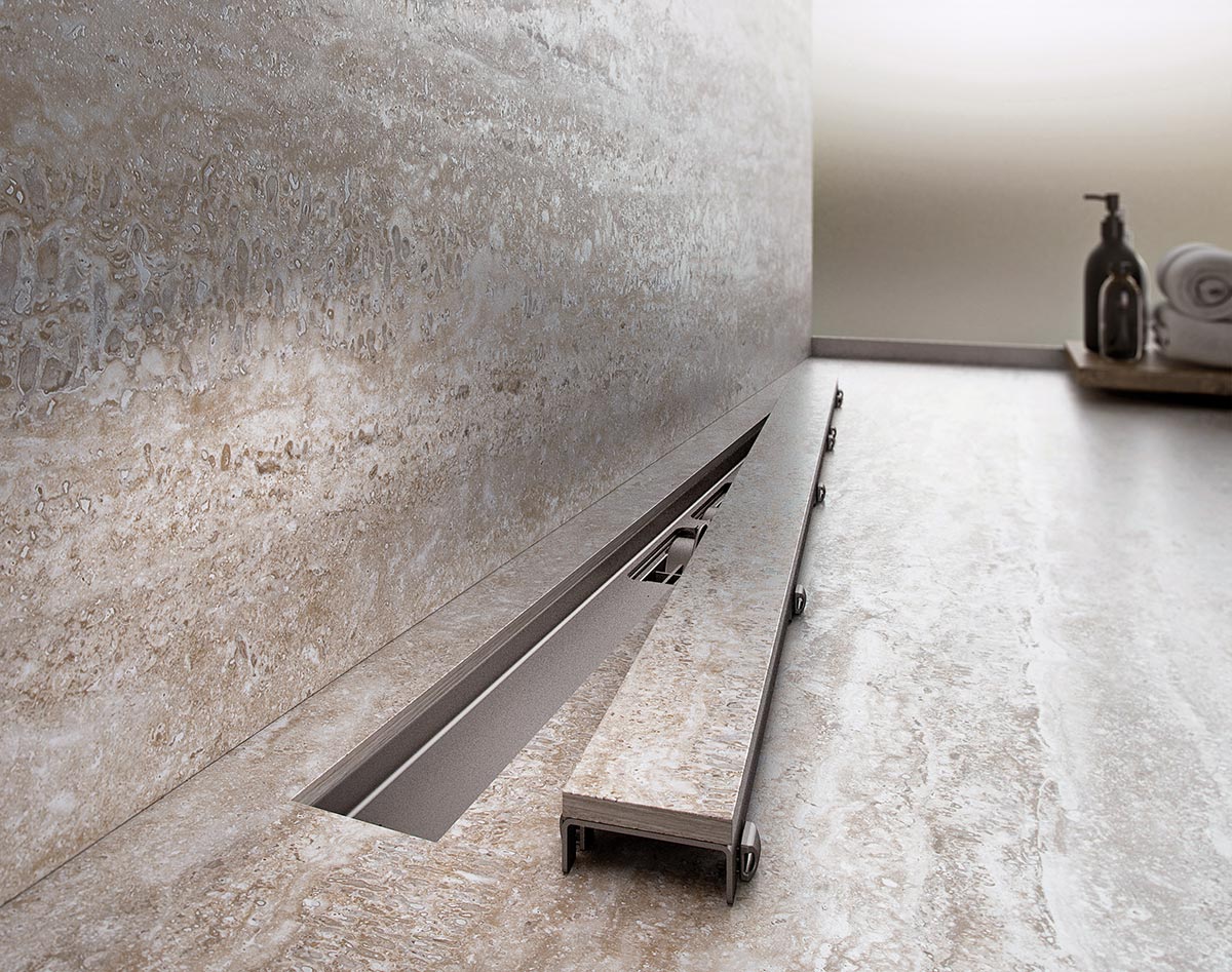 Zuhanyfolyóka perem nélkül, burkolható ráccsal